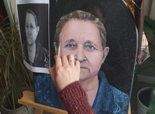 Сам же портрет наносится художником вручную. На приведённых ниже фото отображён поэтапный процесс рисования на граните: для начала камень покрывается специальной составом, затем медленно, начиная с одежды, вырисовываются детали. В заключении идёт углубление черт лица, так как без этого дополнения изображение на граните получится не реалистичным.