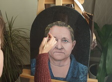 Первый этап работы – компьютерная обработка. Мы заменили одежду усопшей; удалили с головы платок, открыв полностью голову покойной; а также провели детальную доработку её лица: удалили большое количество морщин, сохранив черты.