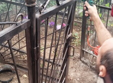Фотоотчет далее позволит проследить за очередностью работ. Первым делом мы установили крест и восстановили целостность ограды.
