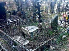 На первых фотографиях показано исходное состояние места захоронения после зимы. Клиенту требовалось срочная уборка, за которую мы и принялись. Работы было достаточно много – вся могила заросла травой.